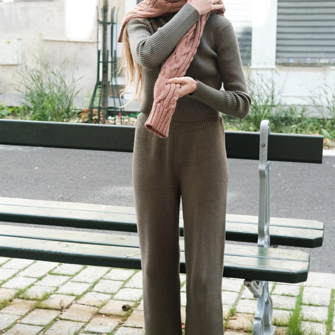 Ozma of California GREEN Mock Neck Ribbed Pant Sweater Set SIZE XS {PRELOVED}