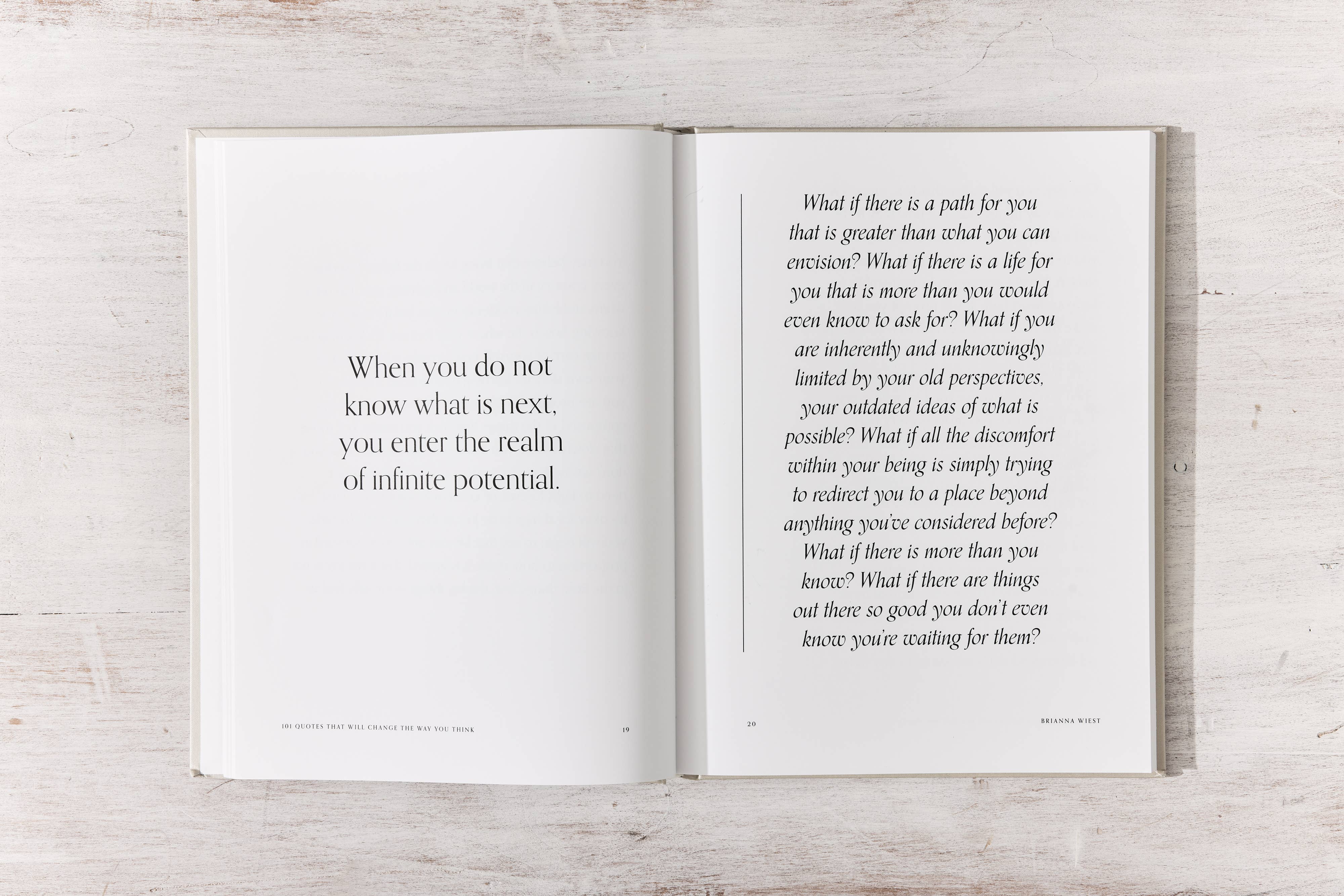 By Brianna Wiest A collection of Brianna Wiest's most beloved quotes from her best-selling works, including "101 Essays That Will Change The Way You Think," "The Mountain Is You," "Ceremony," "The Pivot Year," "The Truth About Everything," "Salt Water," and "When You're Ready, This Is How You Heal." This beautifully crafted hardcover coffee table book encourages daily inspiration via words that speak directly to the soul.