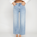 Light Indigo Worn Aberdeen Ankle Crop High Rise Jean