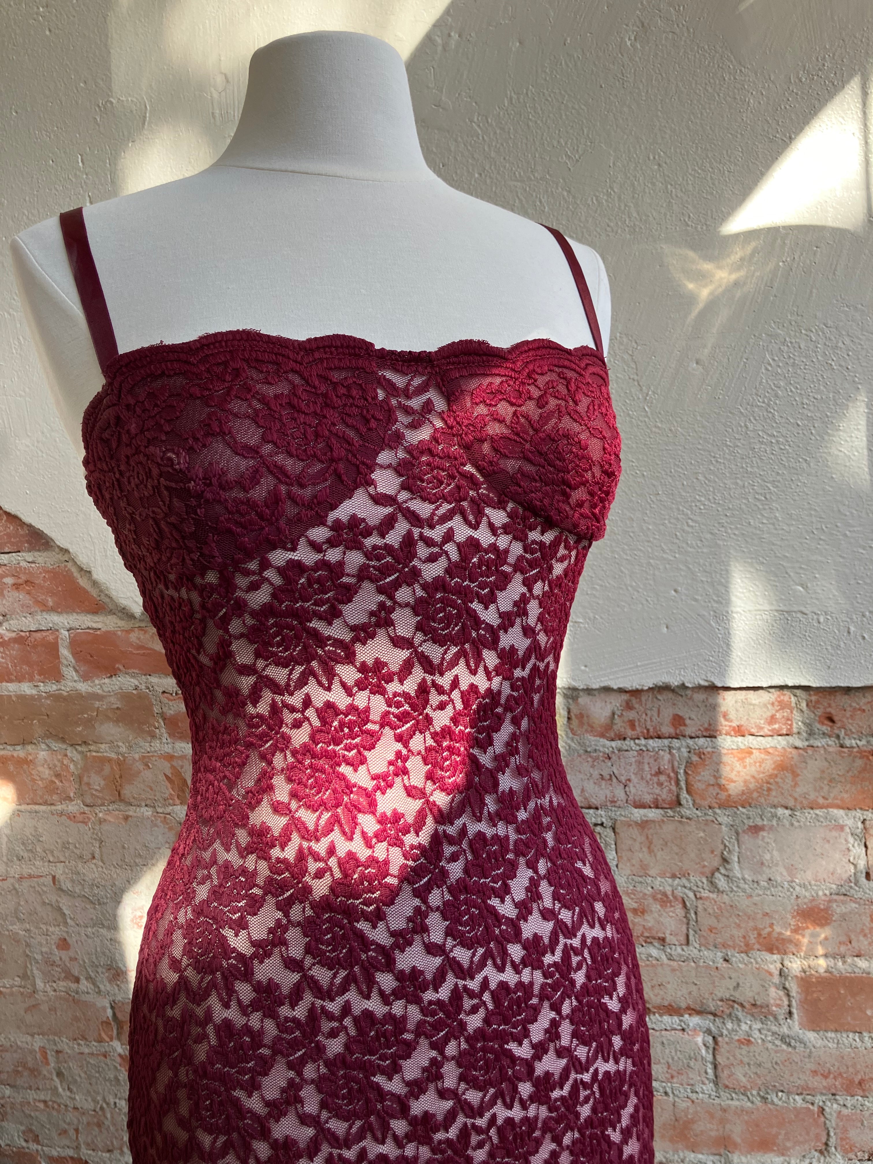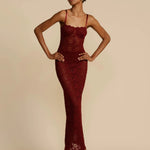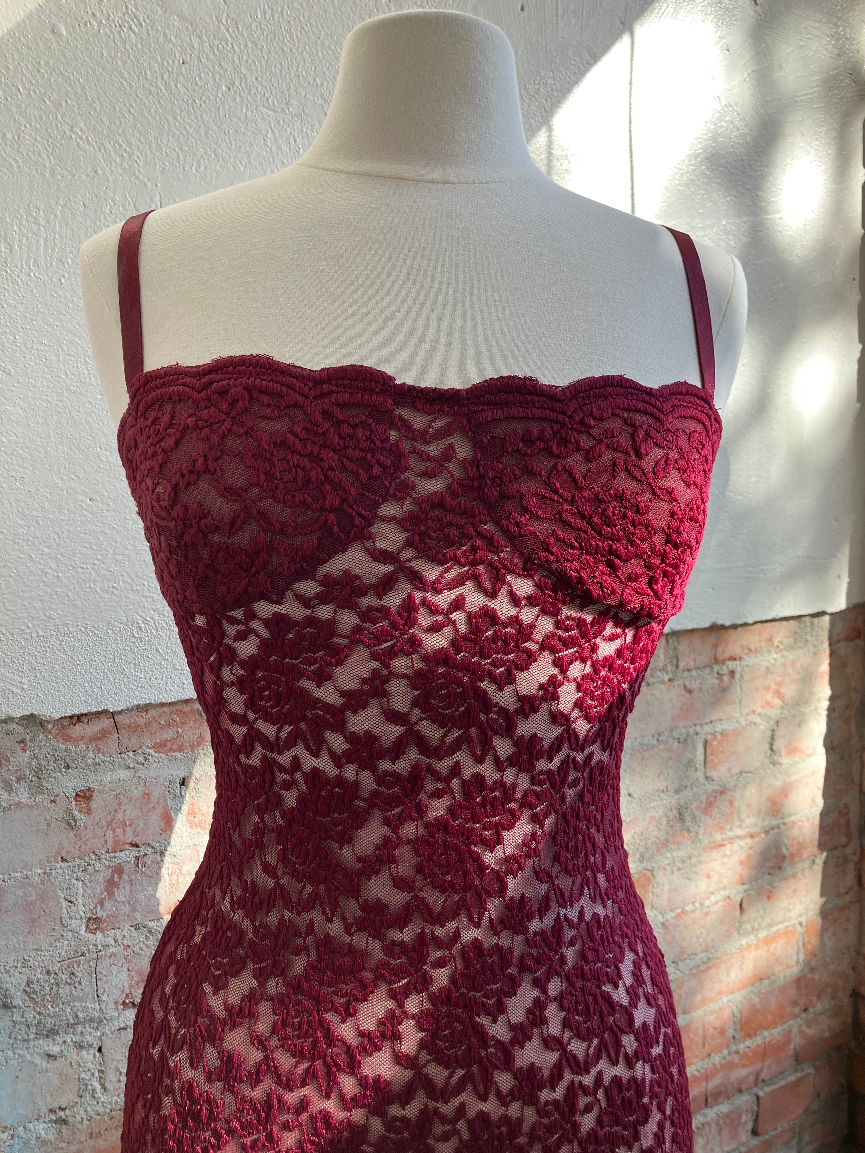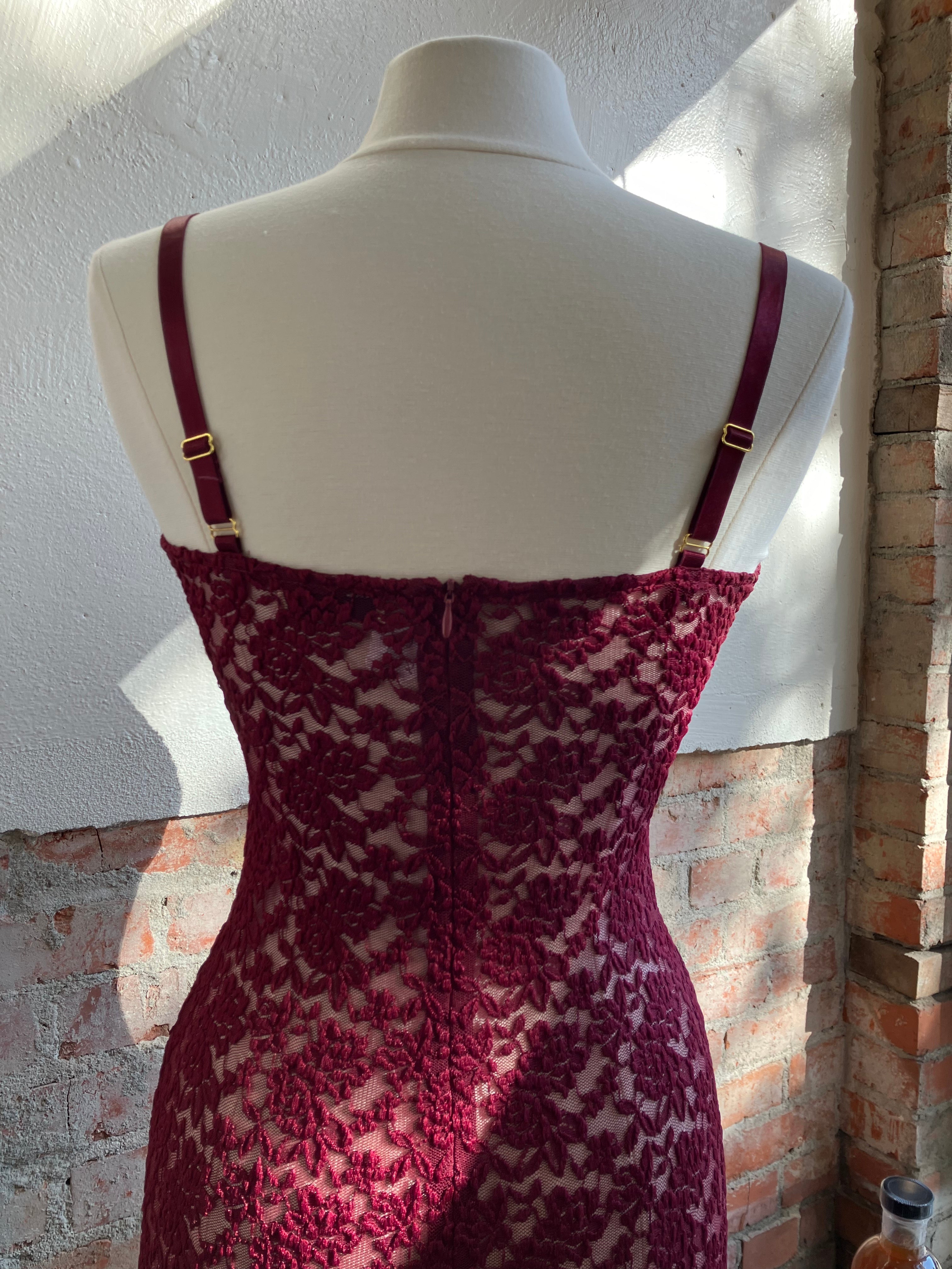 Step out in grace with Margot. Made from vintage-inspired lace with scalloped edges, new to Arcina Ori in a luxurious shade of deep Wine. She is the perfect balance between classic evening glamour and seductive allure. Designed to compliment the curves of your hips, before falling into a floor length maxi with a center back split. With comfort at core, adjust her using the gold fastenings on the shoulder straps. Complete with a semi-sweetheart neckline and lined at the bust for coverage and support. A timeless look that is elegantly sheer in finish, Margot will make you the belle of the ball.