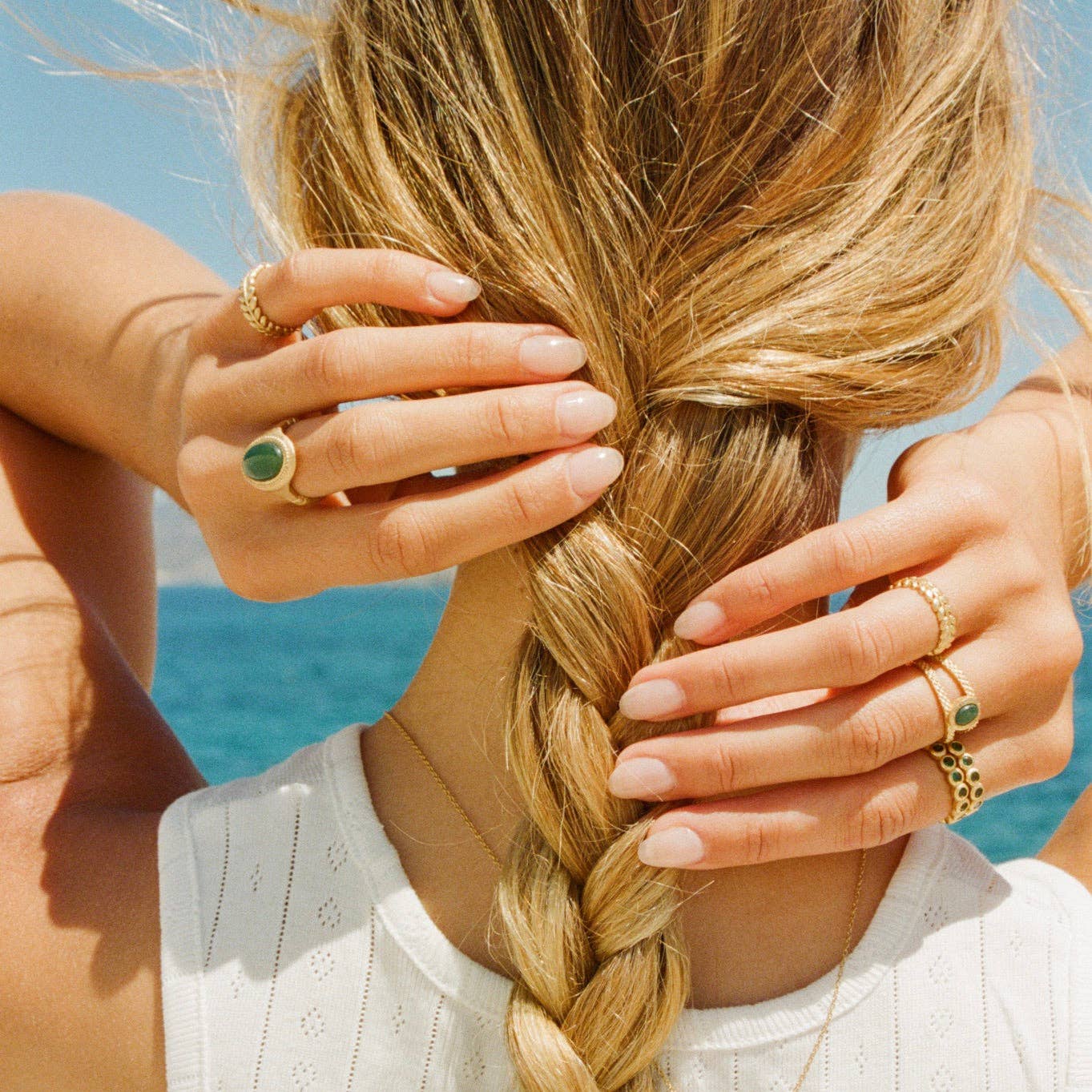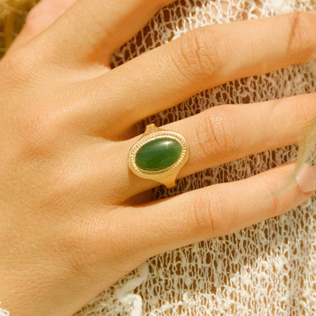 Inspiration : Bal, a Babylonian God, was believed to bring light to his people. Both exotic and elegant, this ring is all about creating a statement piece around the aventurine and its delicate beauty.