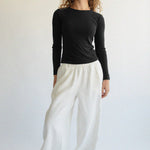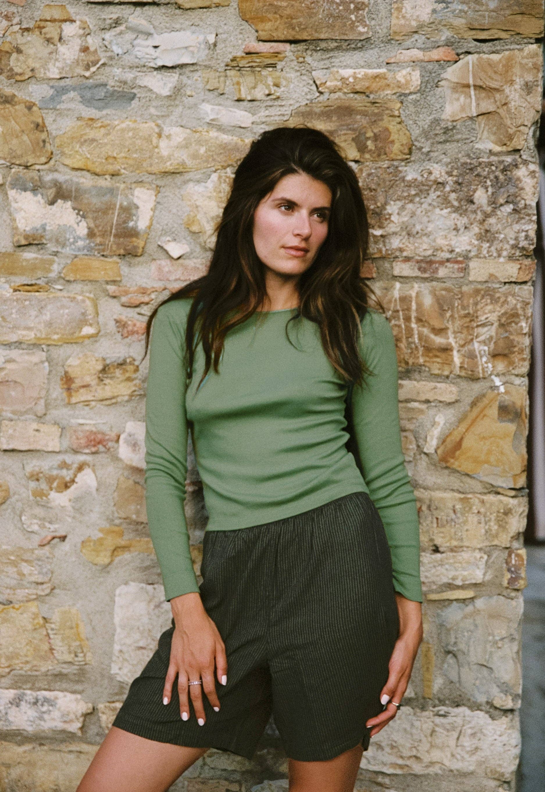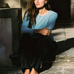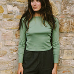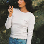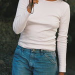 The perfect long sleeved baby tee inspired by the 90's. Features long sleeves and a slightly cropped length. Garment dyed and pre-shrunk.