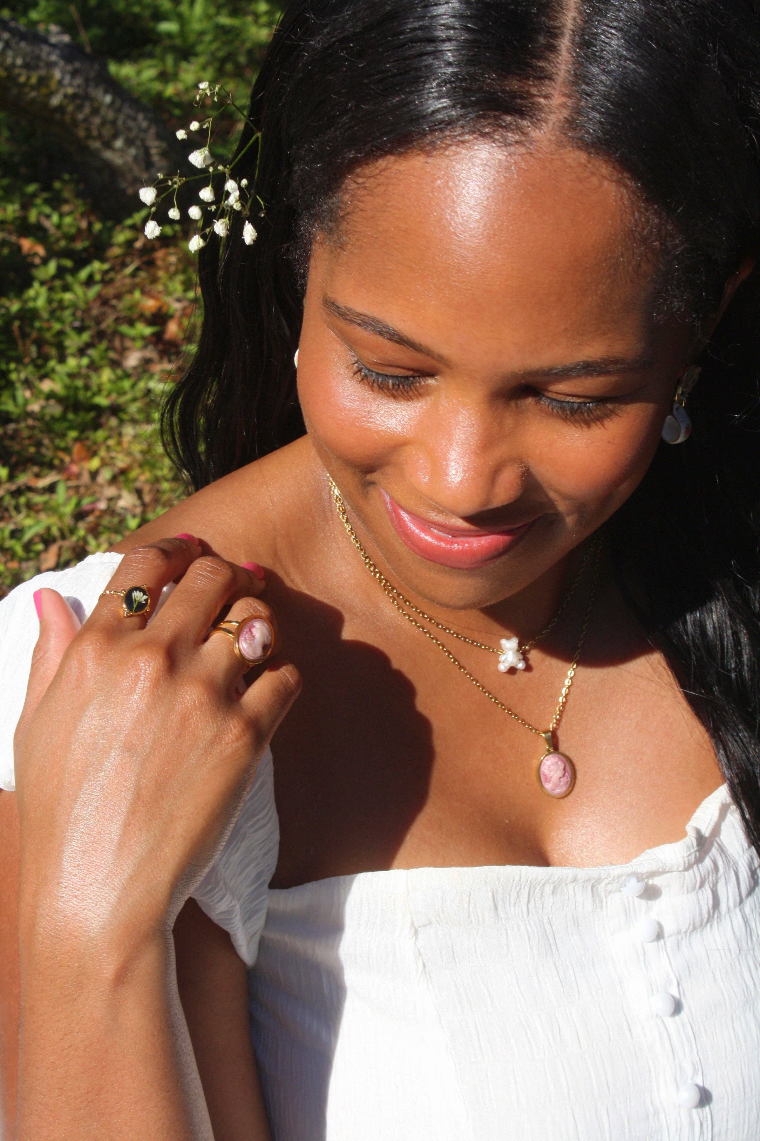 This elegant necklace is made using hypoallergenic materials! Pair with the Dreamy Cameo  ring!