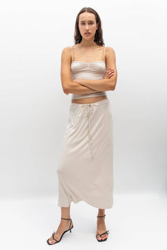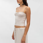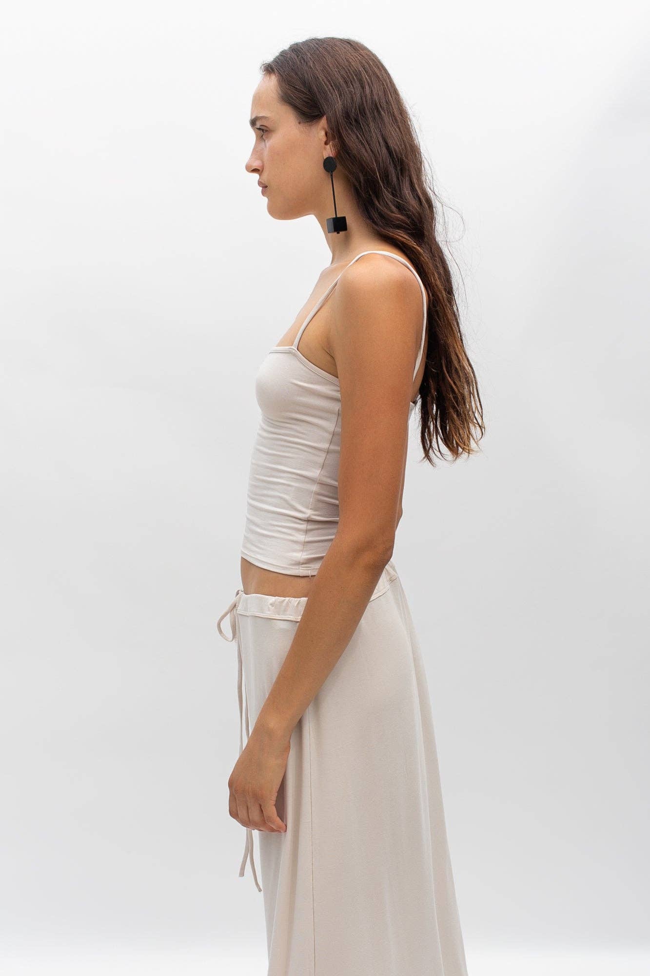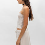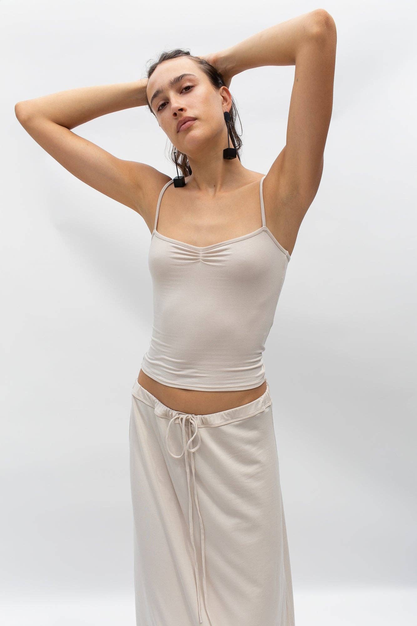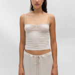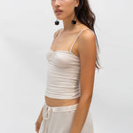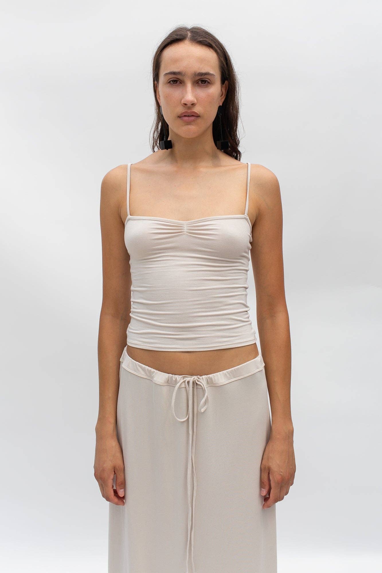 The Eva Top features a timeless silhouette with a sweetheart shaped neck line, spaghetti straps, and a fitted body and.