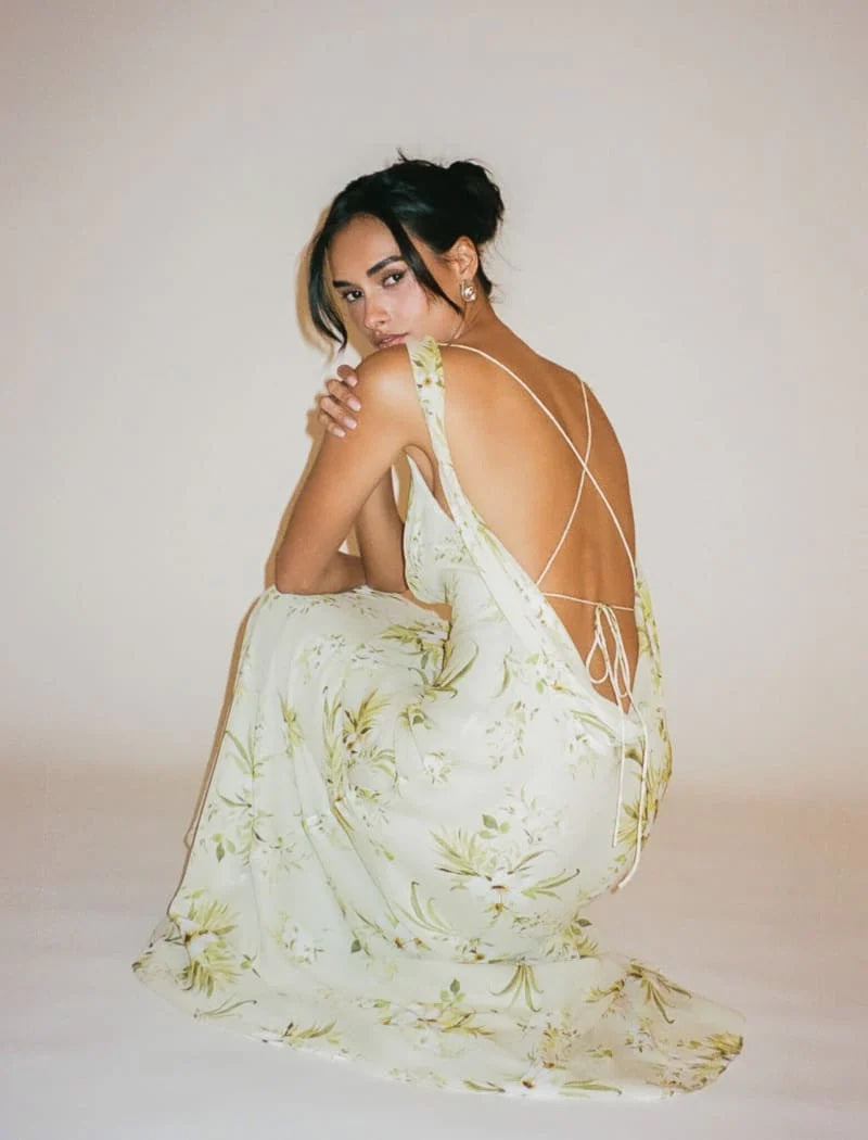 '90s nostalgia never looked so good. A dreamy ode to that Friends bridesmaid moment, now designed with soft draping, sultry details, and a modern silhouette worth rerunning.