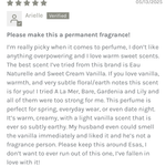 Organic Sugarcane Alcohol*, Distilled Water, Coconut-Derived Glycerin, Grape Leaf Tincture**, Vanilla Bourbon, Copaiba Balsam, Sandalwood Indonesia, Ambrette Seed, Violet Leaf, Mimosa, Gardenia, Ylang Ylang*, Orris Root, Bergamot FCF*, Ginger Root, Osmanthus, Patchouli*, and Lilac