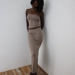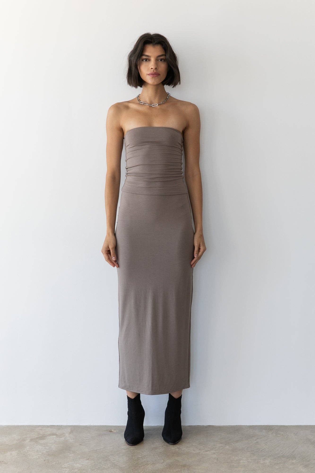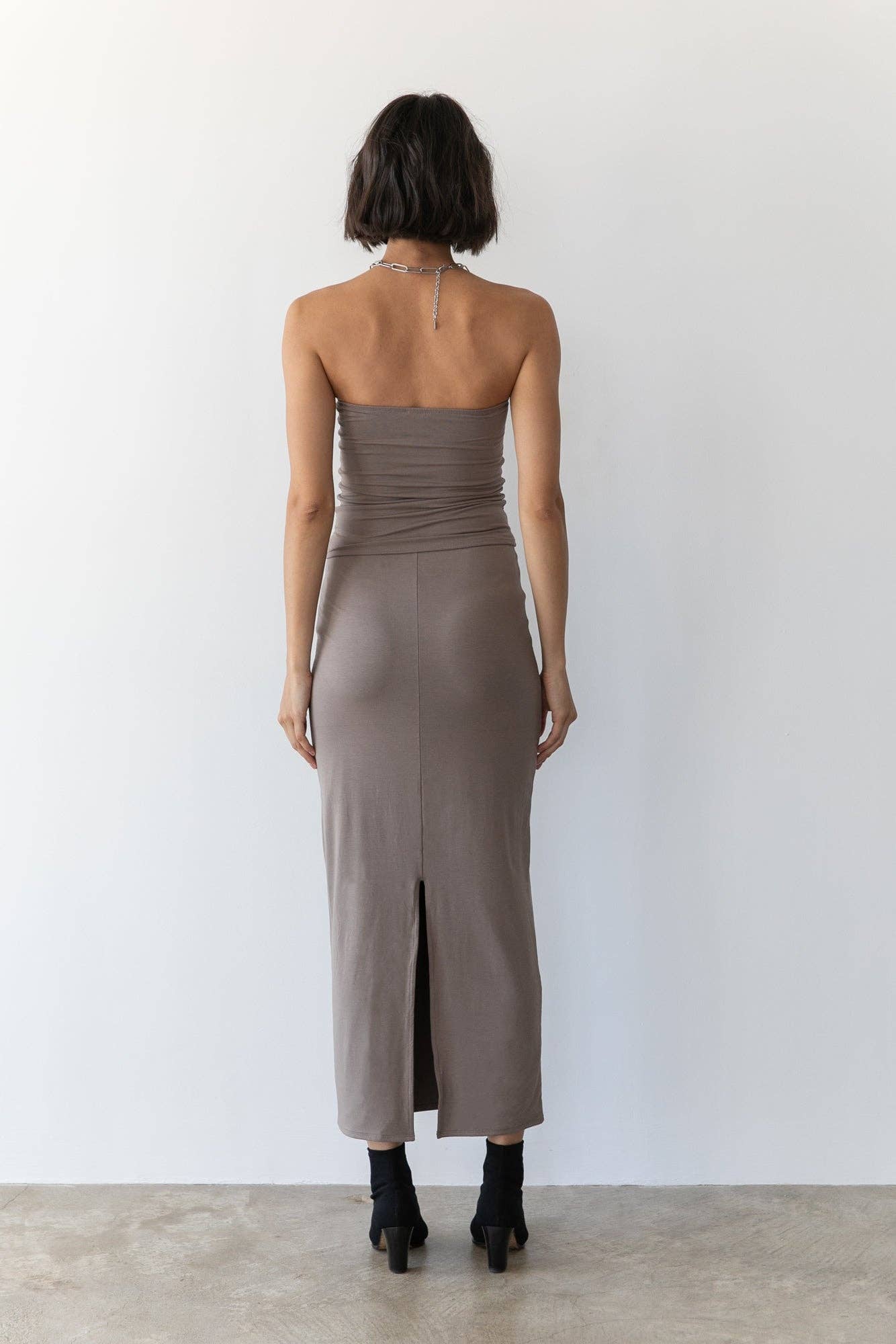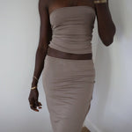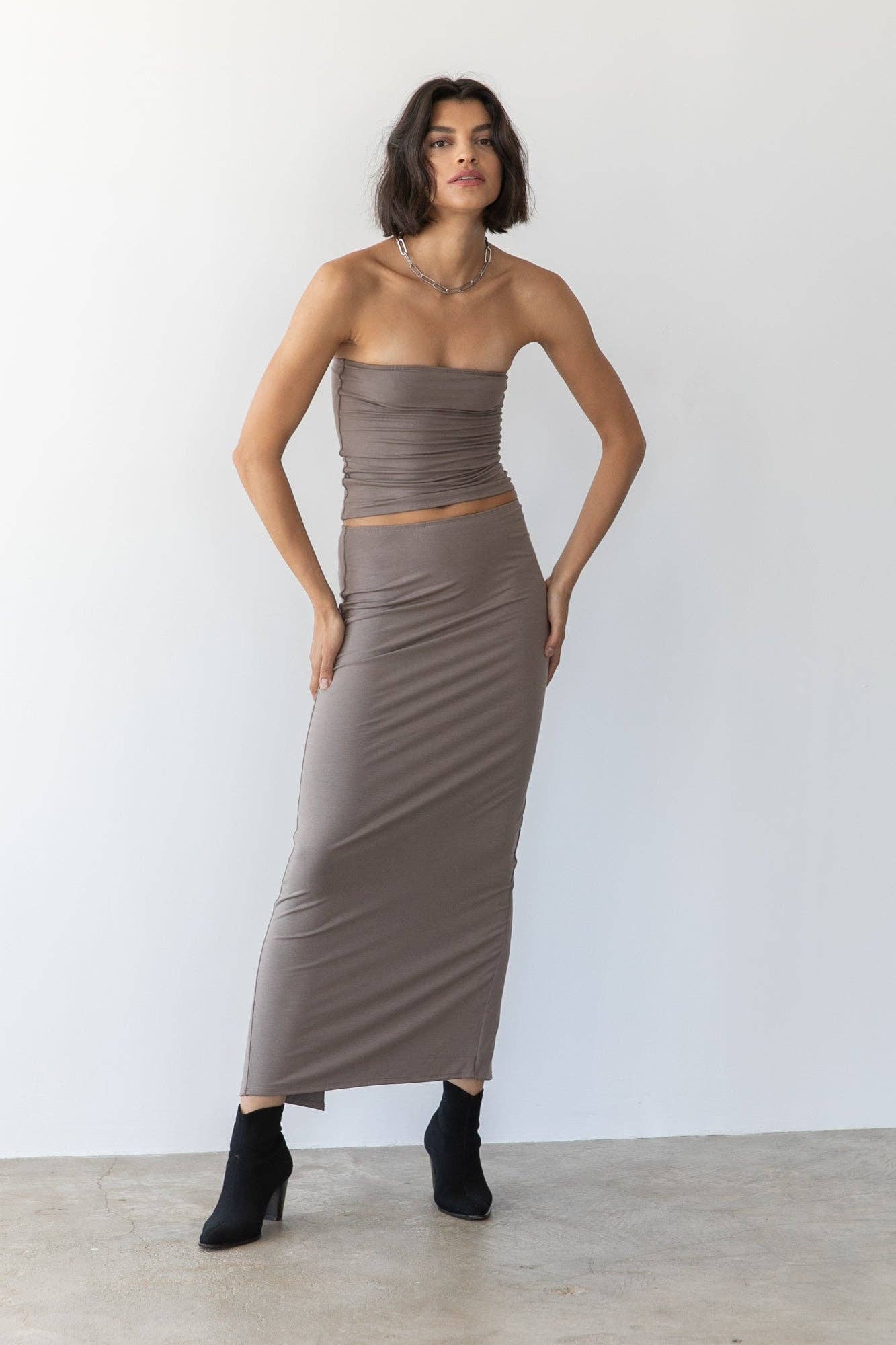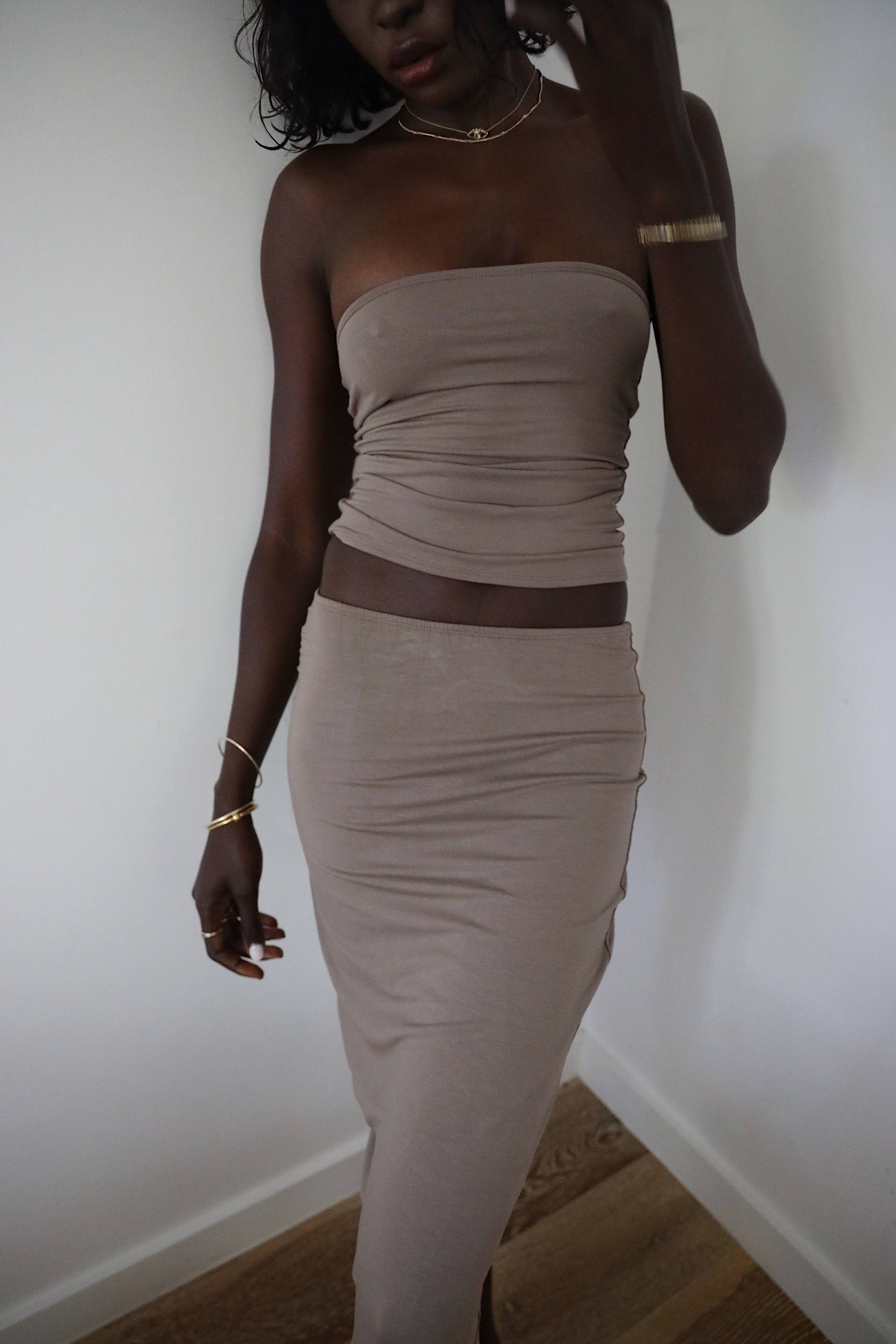 Sexy yet simple. The Kendall Set includes a super soft form fitting tube top and matching skirt with high back slit for ease of wear. Create a multitude of looks with the set together or separately.