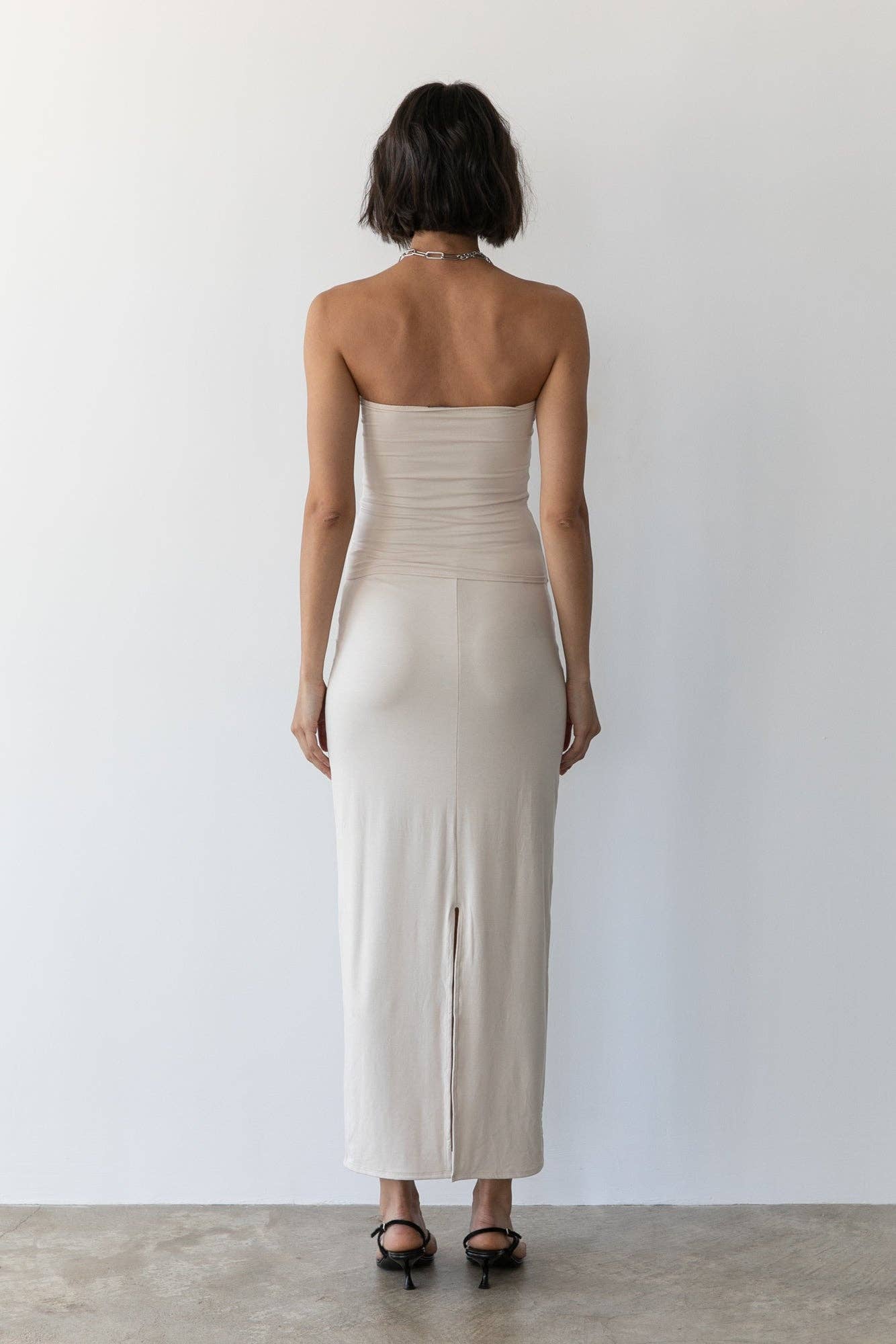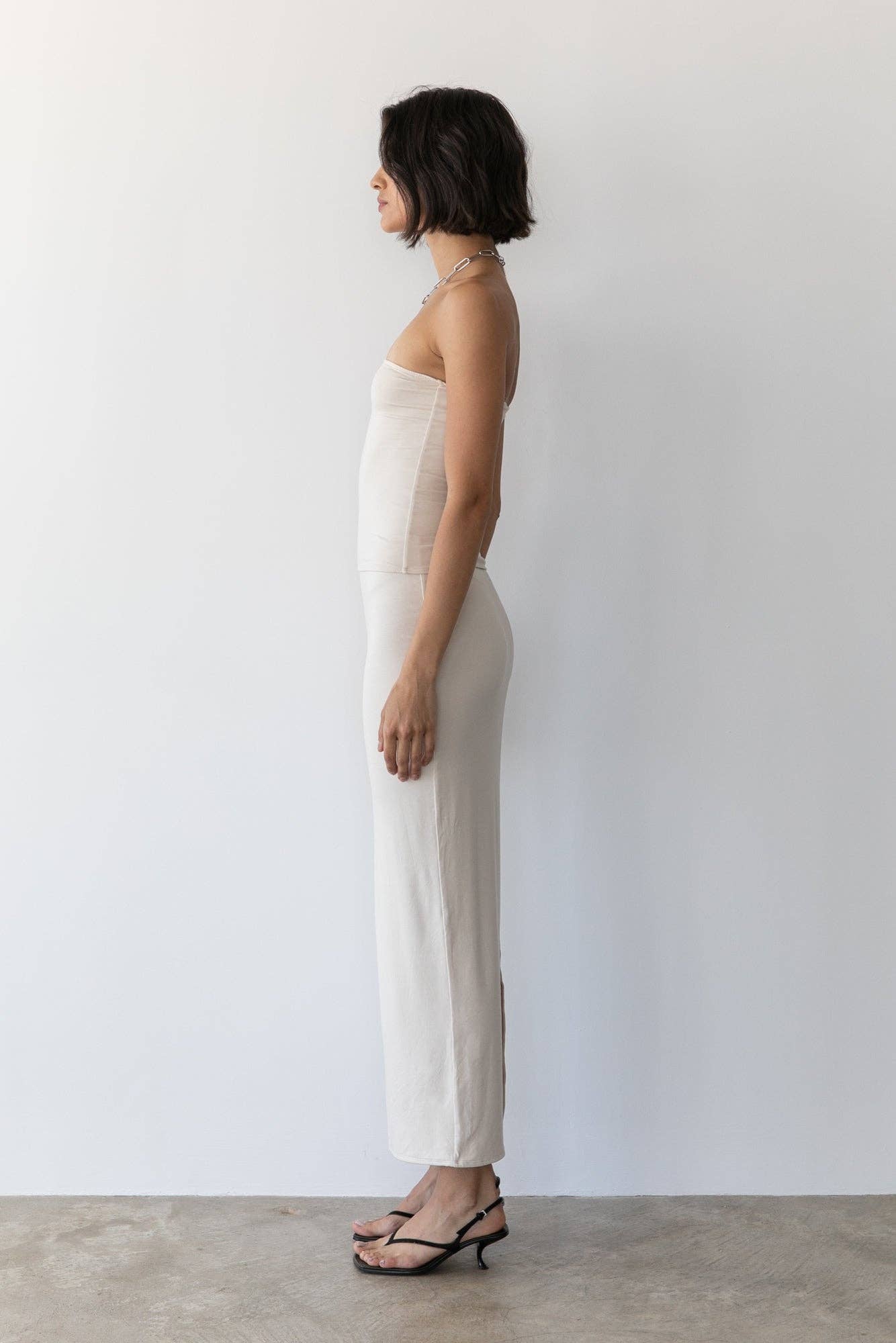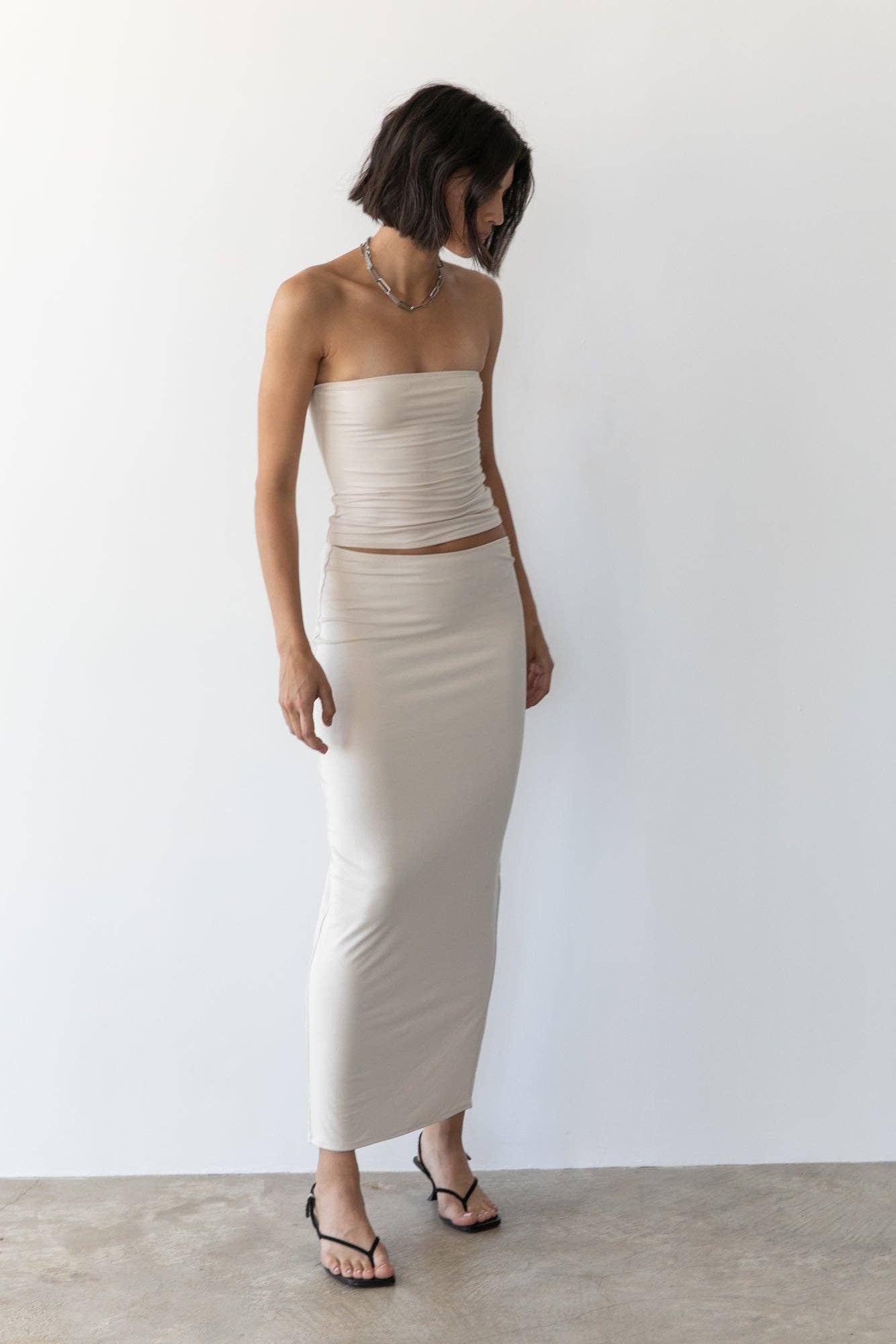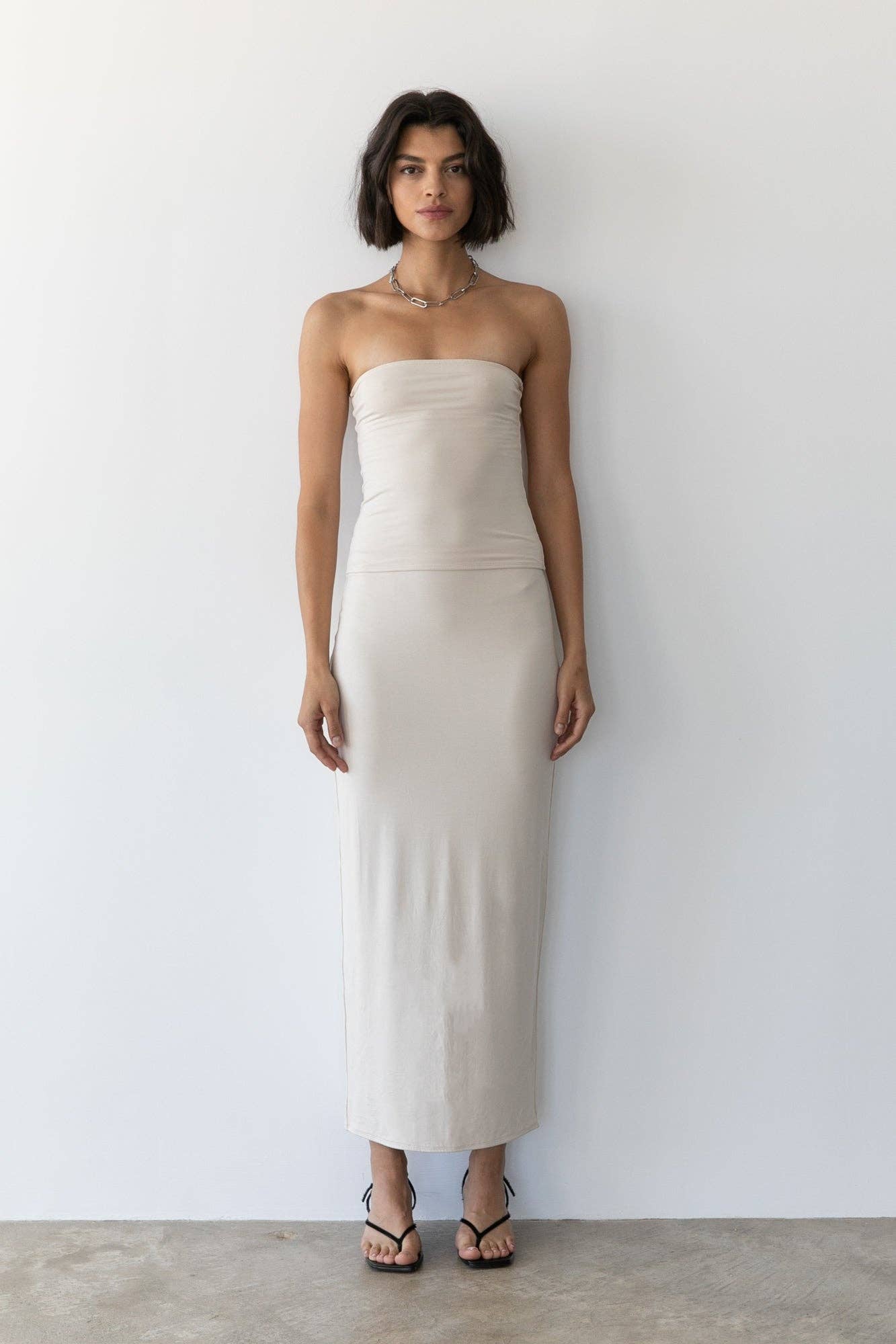 Sexy yet simple. The Kendall Set includes a super soft form fitting tube top and matching skirt with high back slit for ease of wear. Create a multitude of looks with the set together or separately.
