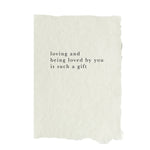 Comes with a textured, harvest white A2 envelope and a small card matte printed with photos and a little information about our process. Card reads “loving and being loved by you is such a gift”