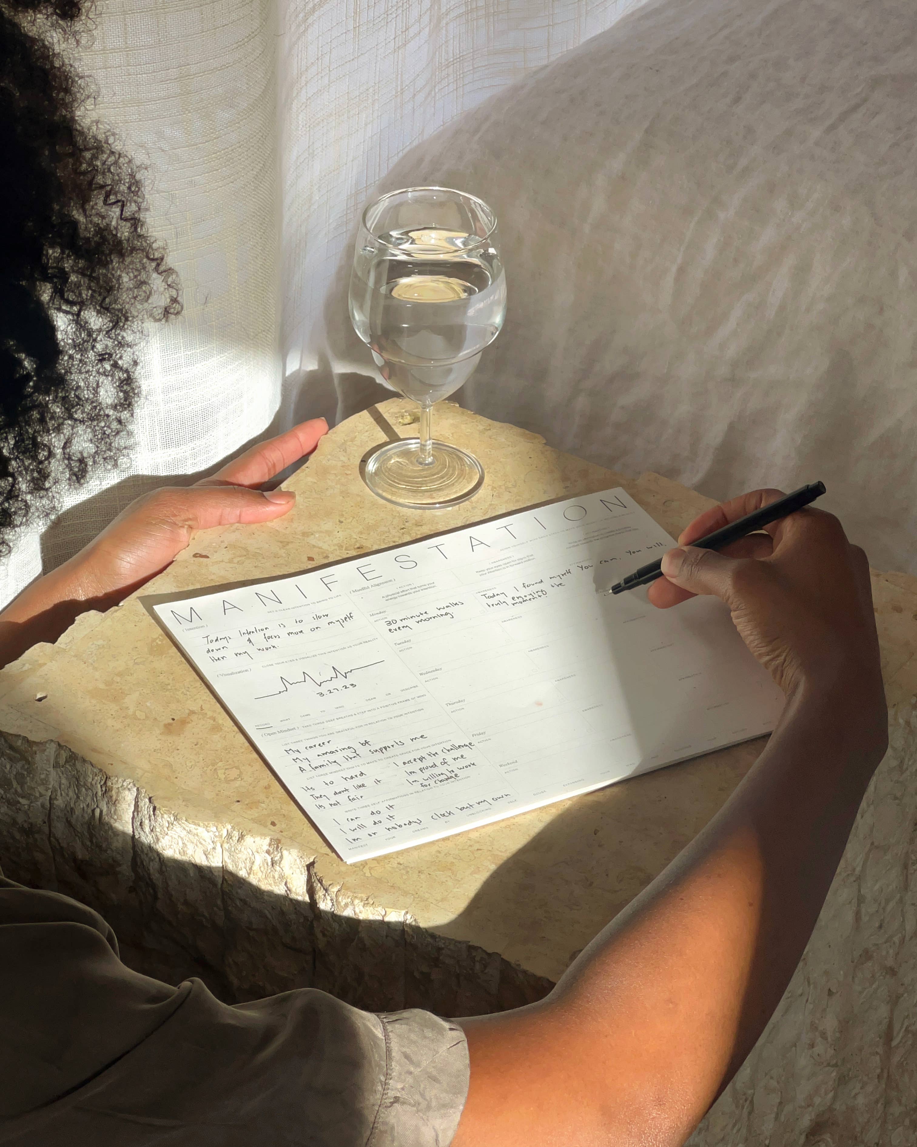 Featured in the 2023 Goop Wellness Gift Guide! A cross between a manifestation journal and a desktop planner, the Manifestation Pad is a step by step guide to start manifesting now. How to use: – At the top of every week, you fill out the left side to set an intention that you want to work on that week. – Every day, you outline the real-life commitments, eyes-open awareness, and affirmations that will bring you closer to your aspirations today.