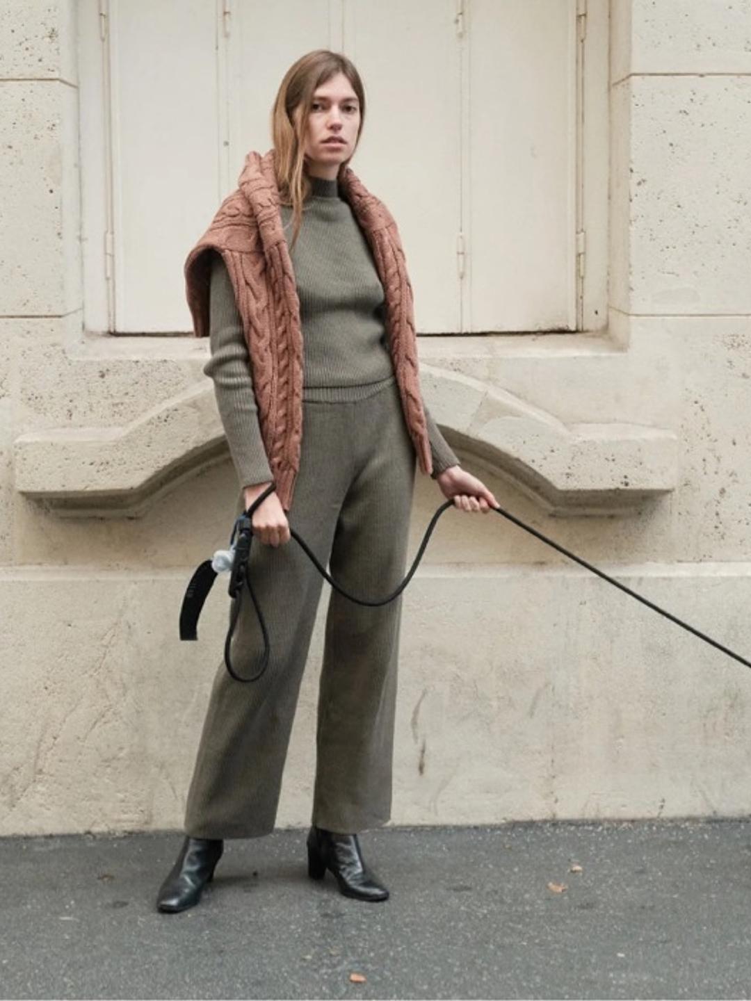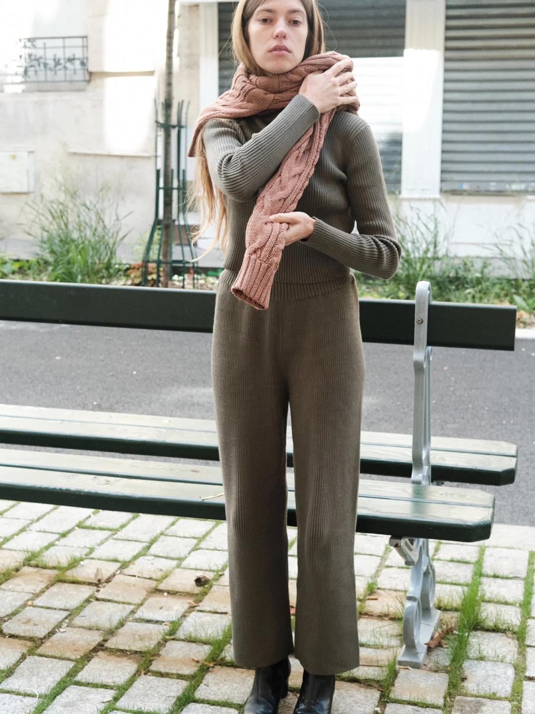 Ozma of California  mock neck sweater and high waist sweater pants matching set in green
