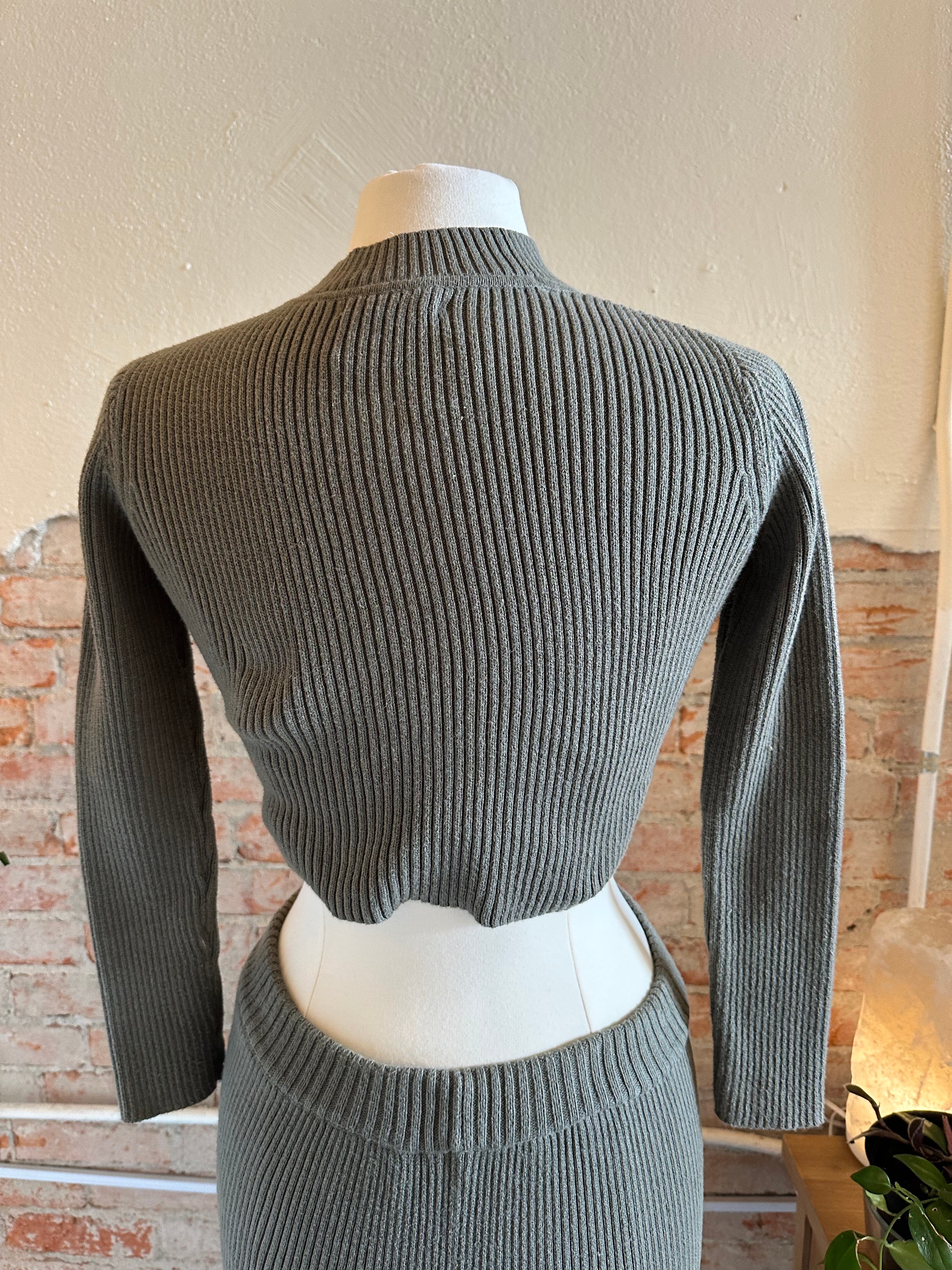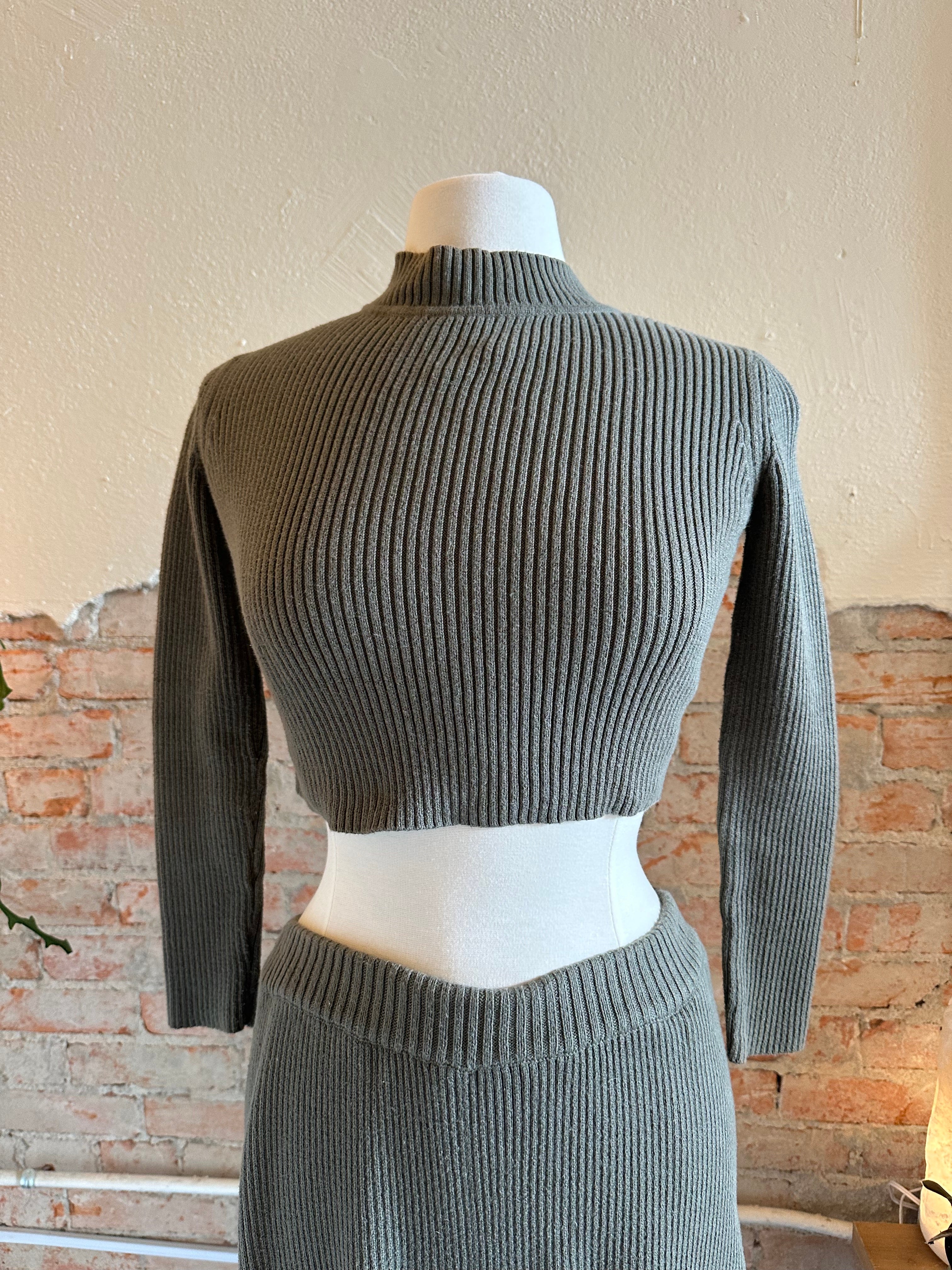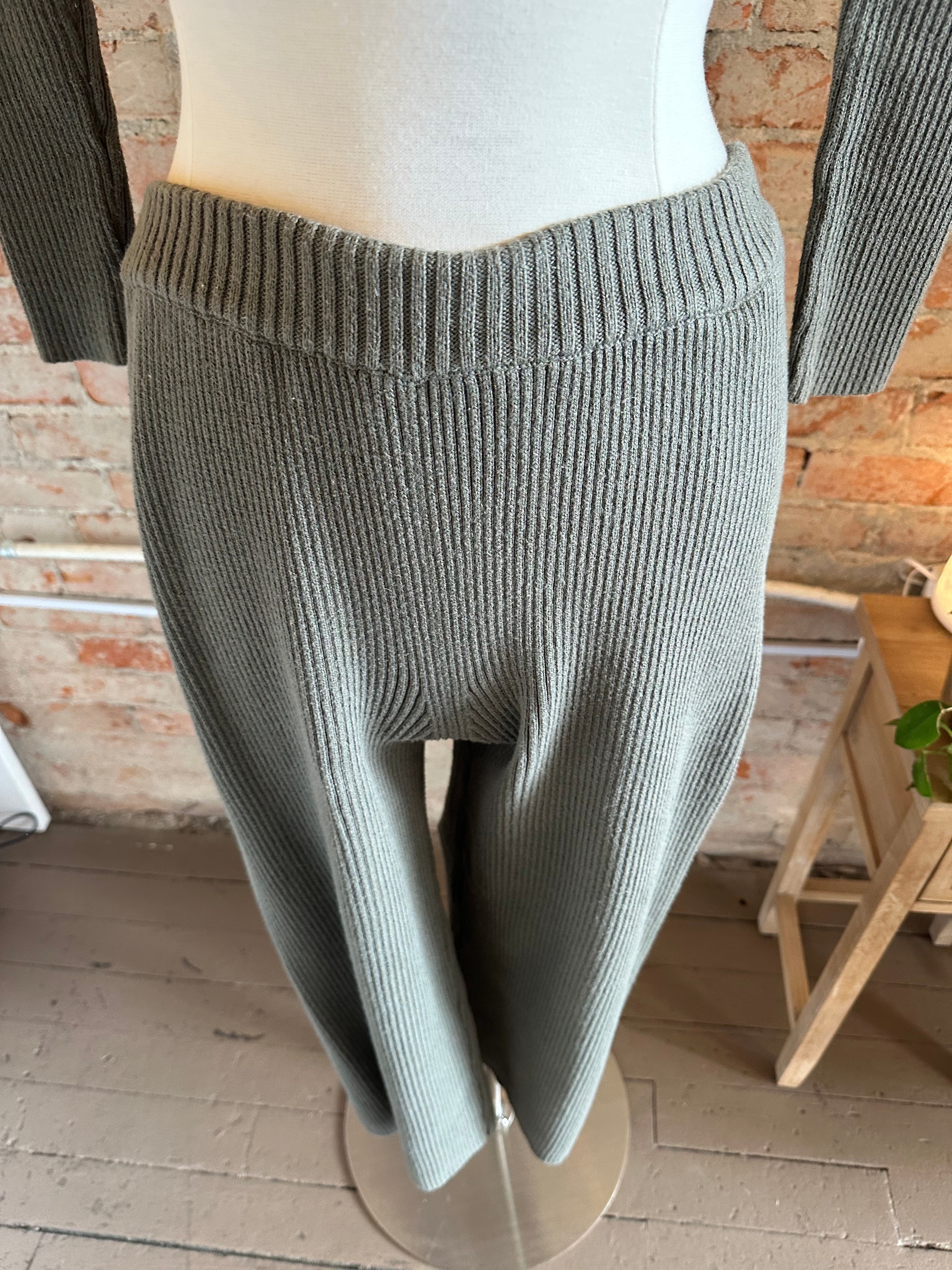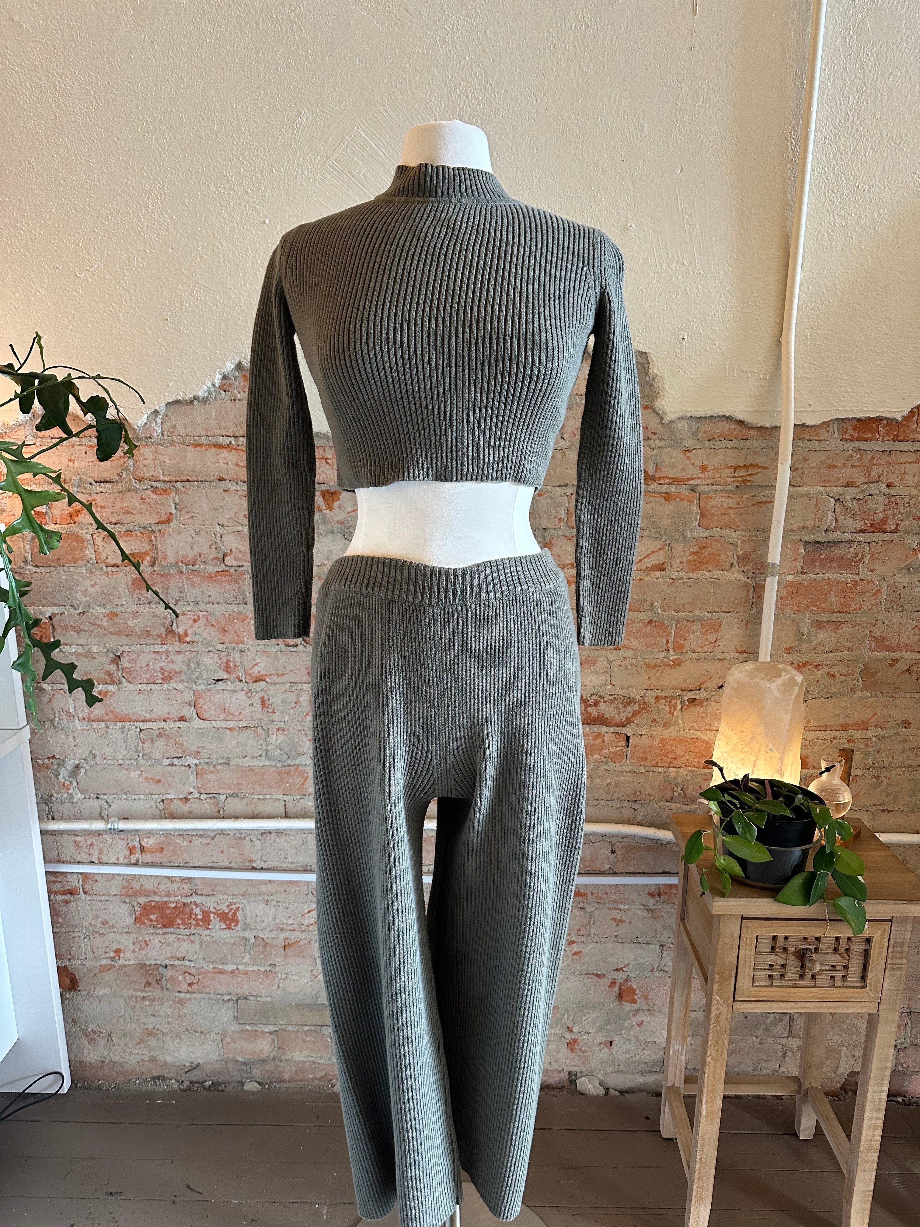 Ozma of California GREEN Mock Neck Ribbed Pant Sweater Set SIZE XS {PRELOVED}