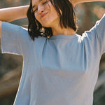 Meet petit pointelle ~ our most delicate semi-opaque cotton pointelle knit inspired by vintage undergarments. This simple tee features a dropped shoulder and looser relaxed fit. Organically delicious.